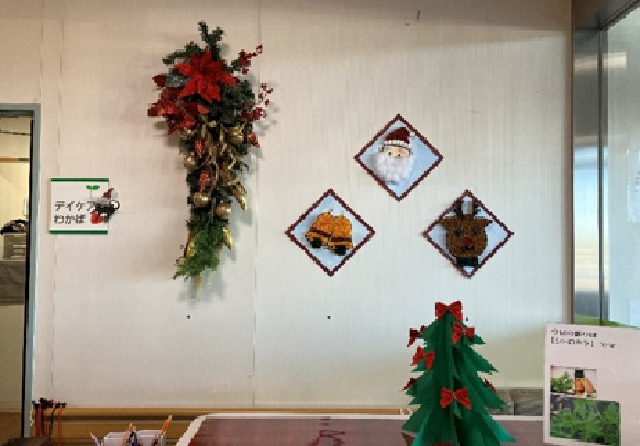 クリスマスに向けて、利用者の皆さんが作業活動で作ってくださった素敵なクリスマス飾りがデイケアの様々なところに飾られました!☺